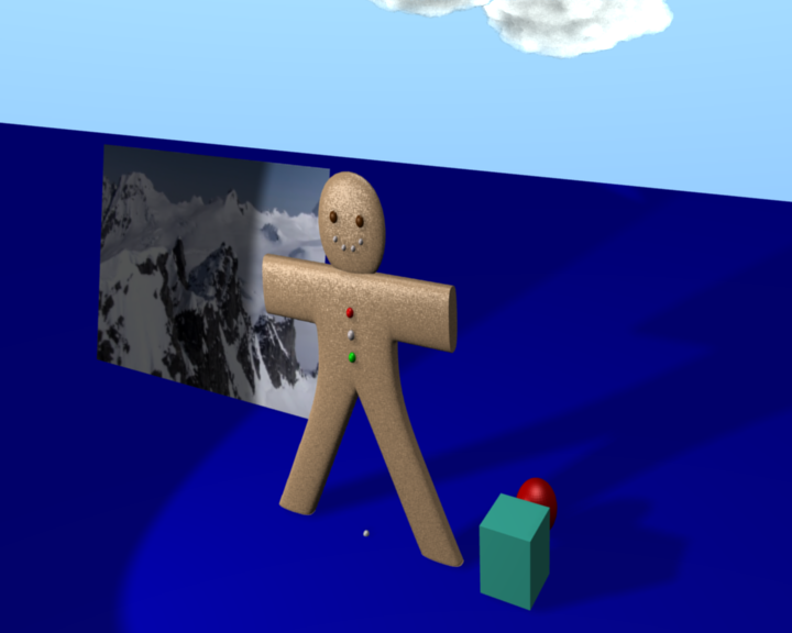 - Camera position: [10 , -15, 10] (world referenced) (extracted from blender)