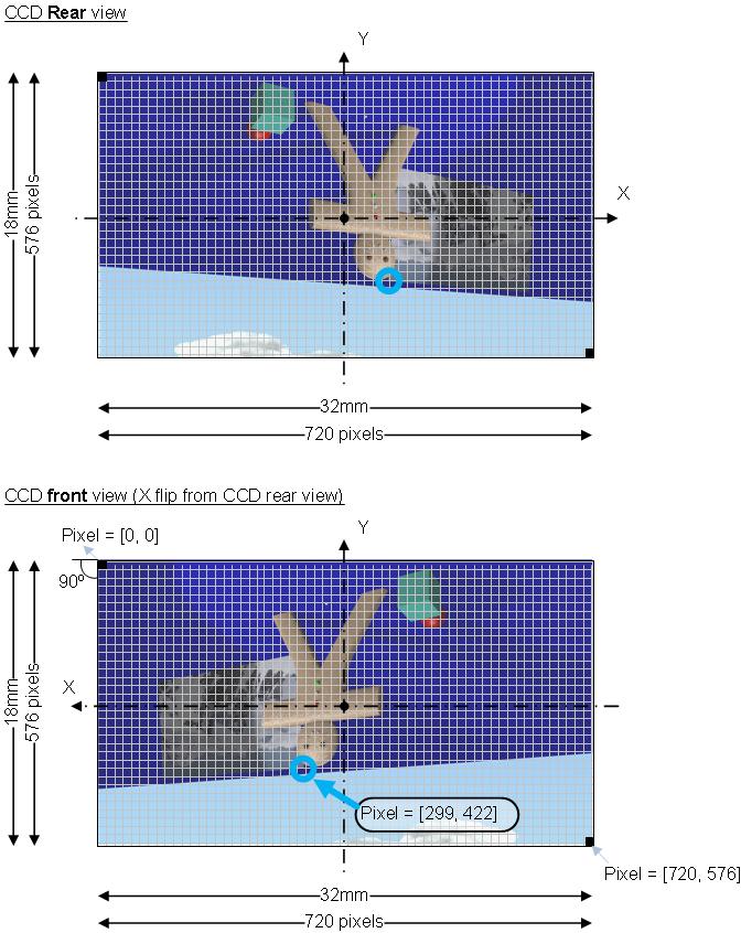 But the image of figure 3 is NOT the captured image in virtual CCD of blender, the image captured by virtual CCD (front view) is vertically flipped, see figure 4
