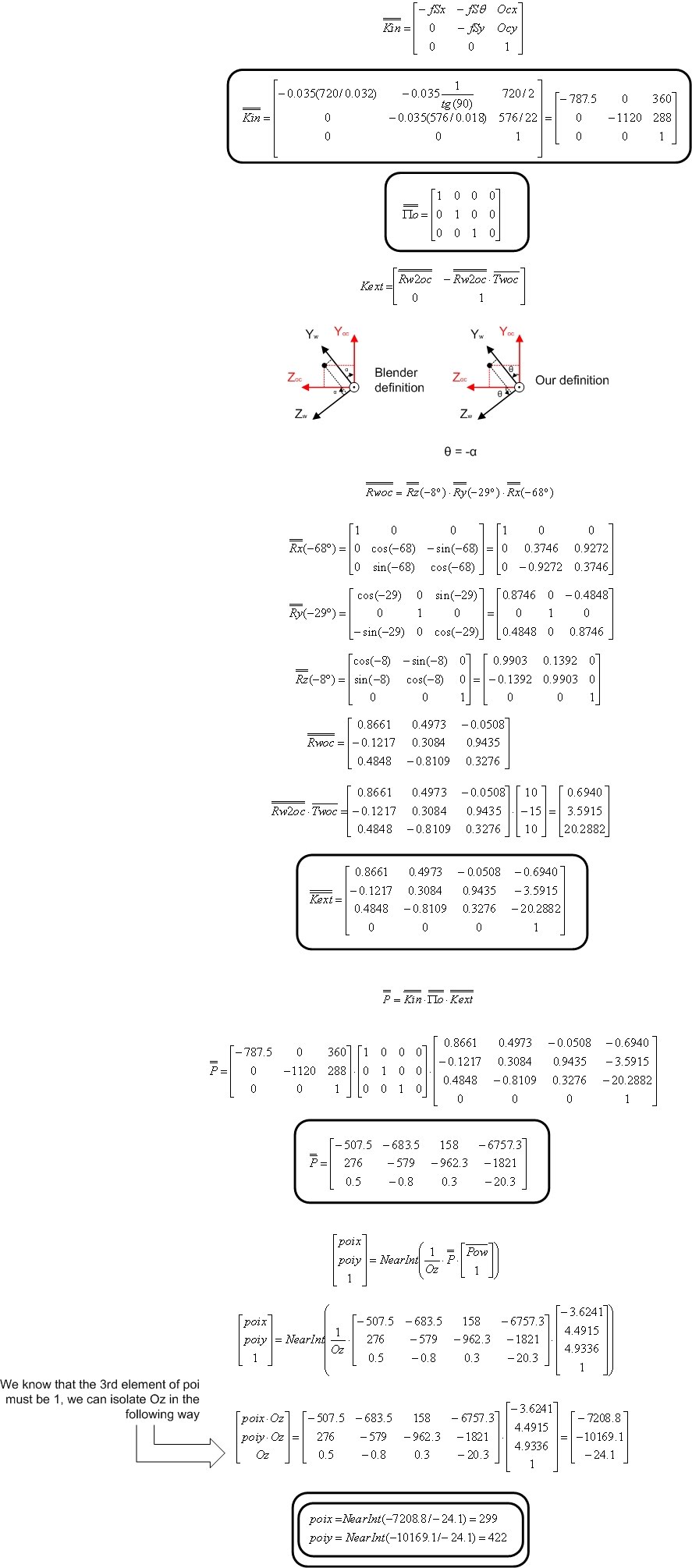 Using this calculus, we can know which will be the correspondence pixel of any point of the real world if we have the following parameters: